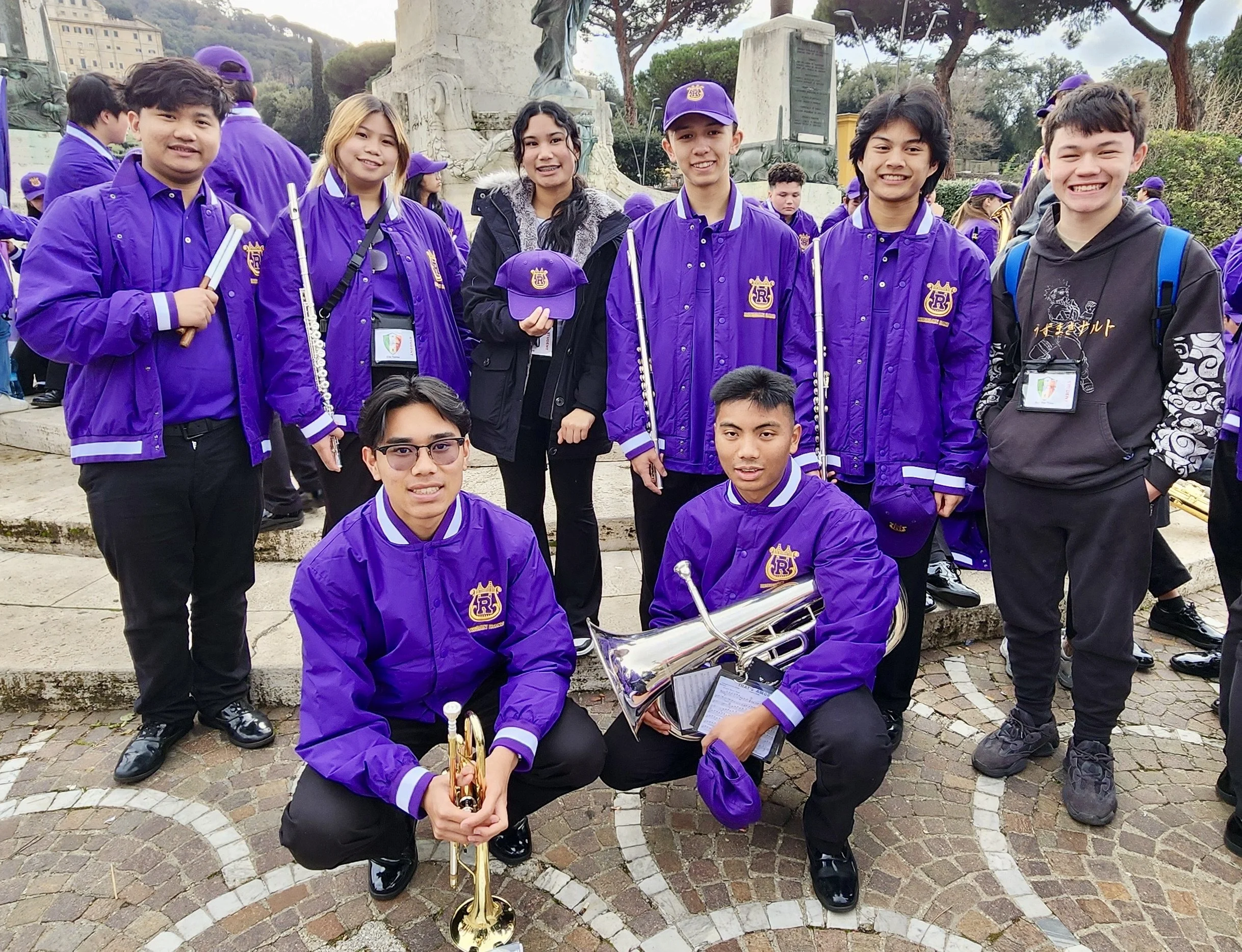 Mr. M’s former students perform with the Riordan High School band in Rome in 2024.